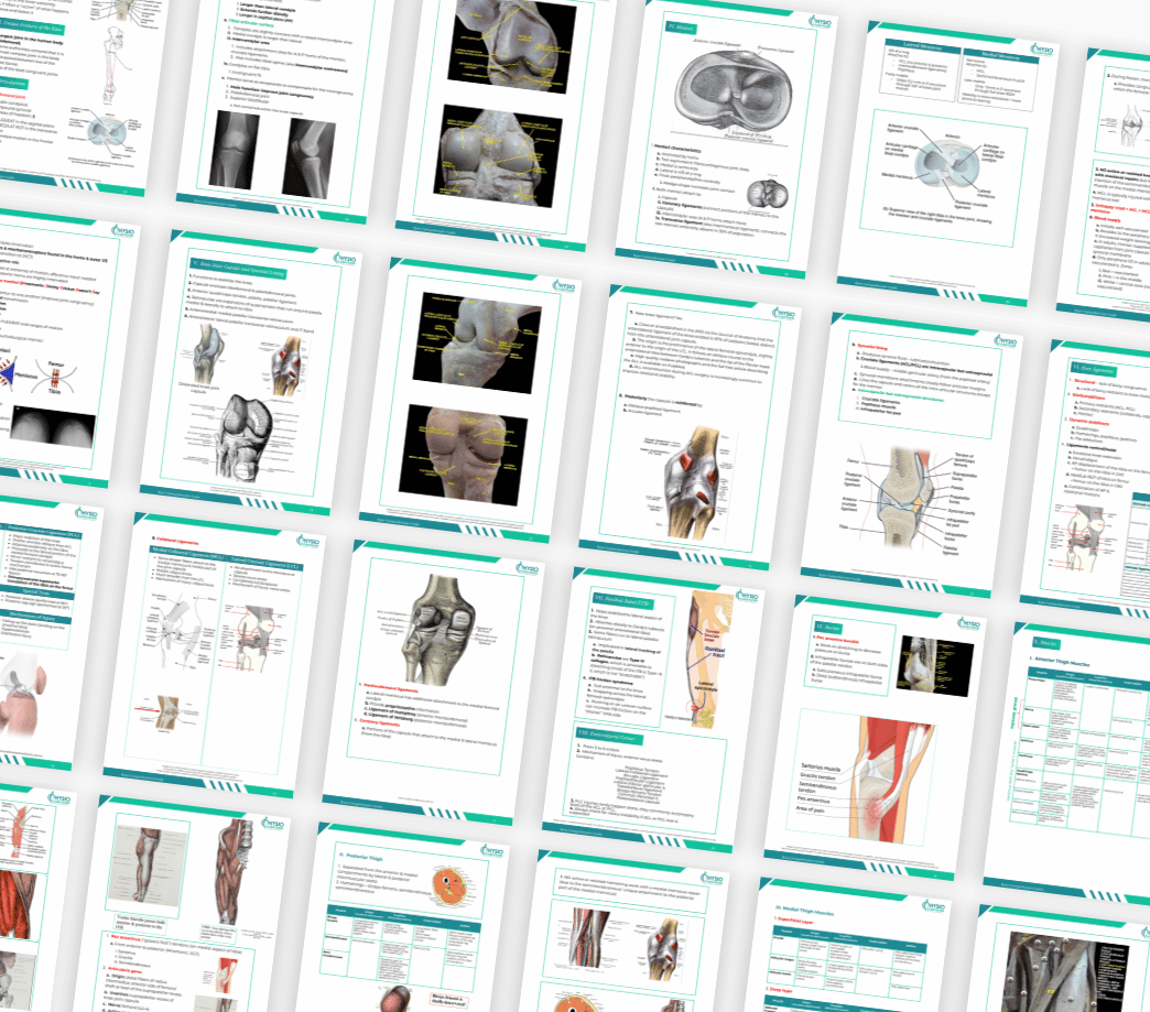The Knee Comprehensive Guide is a clinically focused study and reference resource that brings together anatomy, biomechanics, examination, pathology, imaging, and rehabilitation in one clear, organized place.